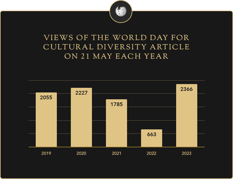We improved Wikipedia’s article about the World Day for Cultural Diversity for Dialogue and Development so that, from now on, it qualifies for being linked on Wikipedia’s home page. The expanded content mentions the Khalili Foundation and the World Festival of Cultural Diversity. For the first time, the article was linked from Wikipedia’s home page on 21 May, making 4.7 million people aware of the significance of the day. The article itself got a record number of views.